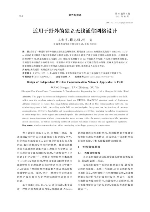 Ke ywords : wirelesscommunication , videomonitorin g technolo gy , p ower g ridconstruction