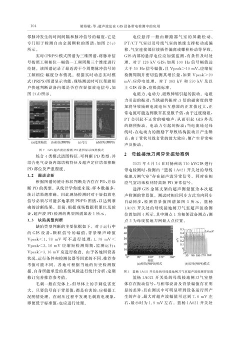 专门用于 检 测 自 由 金 属 颗 粒 的 图 谱, 如 图 2 ( c ) PT / CT 气室以及母线气室的绝缘支撑松动或偏
