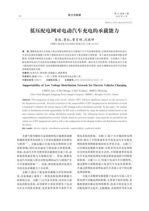 系, 在此基础上建构了一种优化配电网承载能力 目前大多数研究都着眼于电动汽车接入对于