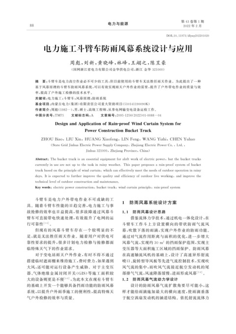 关键词: 电力施工; 斗臂车; 风幕原理; 防雨系统