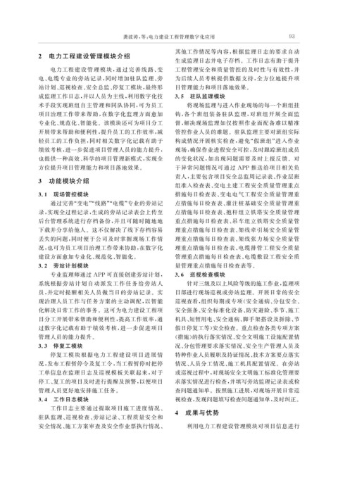 电力工程建 设 管 理 模 块, 通 过 完 善 线 路、 变 工程管理安全和质量管控的及时性与有效性, 并