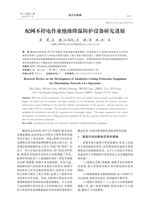 配网不停电作业绝缘降温防护设备研究进展