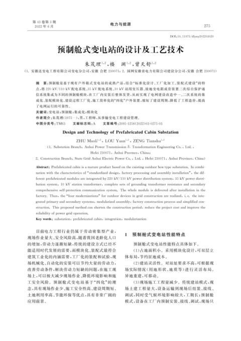 Ke ywords : substation , p refabricatedcabin , inte g ration , modularization