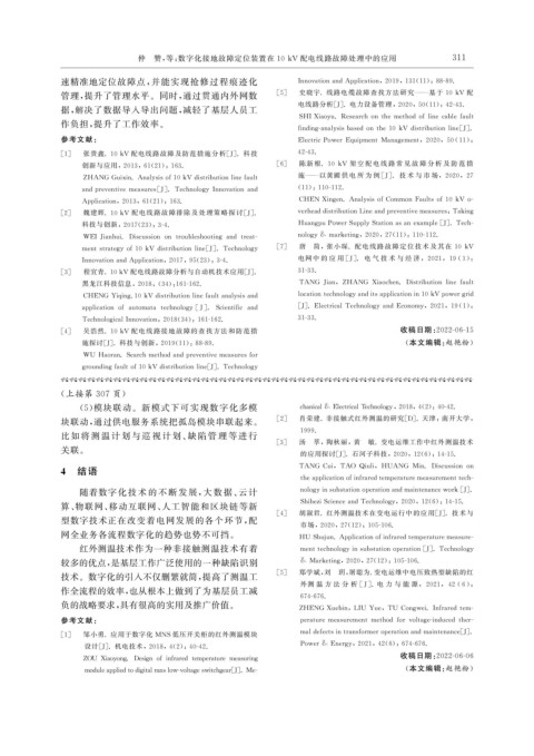 [ 4 ] 吴浩然 .10kV 配电线路接地故障的查找方法和防范措 收稿日期: 2022-06-15