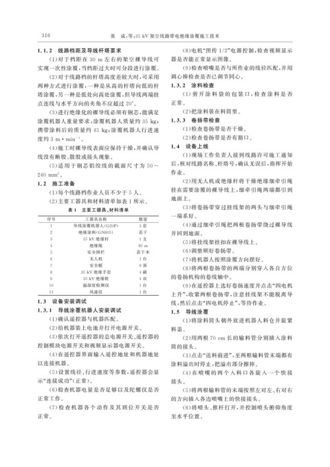 3 1 6 张 成, 等: 35kV 架空线路带电绝缘涂覆施工技术