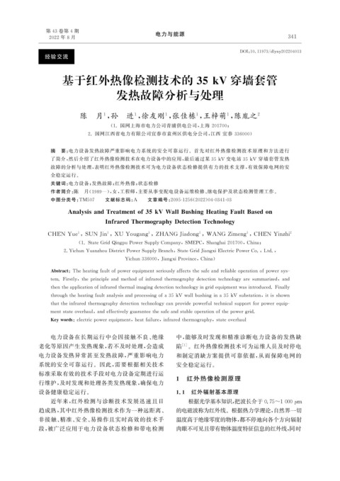 了简介, 然后介绍了红外热像检测技术在电力设备中的应用, 最后通过某 35kV 变电站 35kV 穿墙套管发热