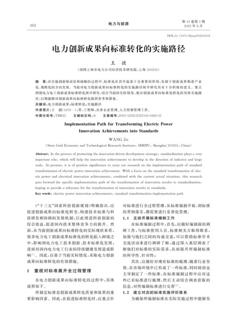 Ke ywords : electricp owerinnovationachievements , standardtransformation , im p lementationp ath