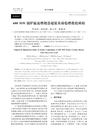 面也能够在 20% 额定负荷情况下, 燃烧器能够保证煤粉稳定燃烧的目标, 对 600 MW 锅炉旋流燃烧器提出了