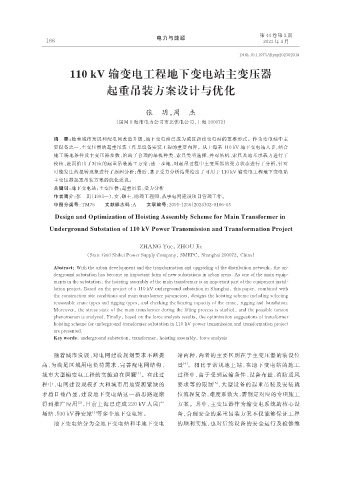 要设备之一,主变压器的起重吊装工作是设备安装工程的重要内容。从上海某 110 kV 地下变电站入手,结合