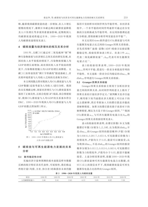 张忠华,等:碳排放与经济及可再生能源电力发展的相互关系研究 219
