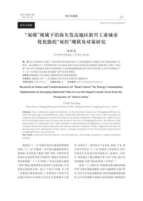 明显。通过调研位于广东省粤西沿海欠发达地区的湛江市近年来的经济发展情况与能耗状况,剖析了“碳达