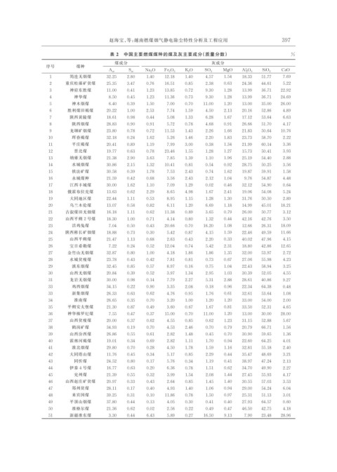 表 2 中国主要燃煤煤种的煤及灰主要成分(质量分数) %