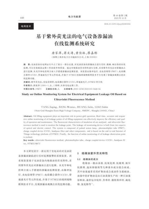 监测,可以有效提高运维工作的效率和质量。通过对绝缘油荧光特性进行分析,采用紫外荧光法对渗漏油点
