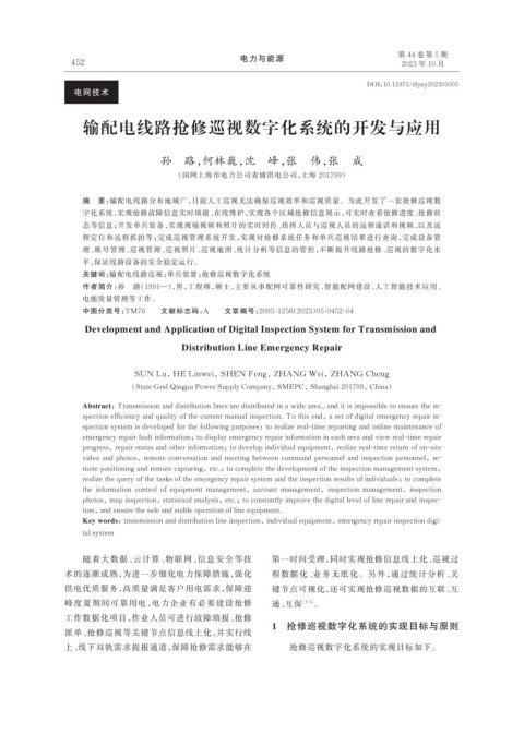 输配电线路抢修巡视数字化系统的开发与应用