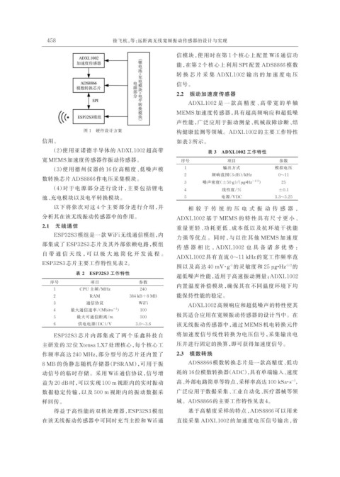在该无线振动传感器中可同时充当主控和 Wifi 通 直接采集 ADXL1002 的加速度电压信号输出,省
