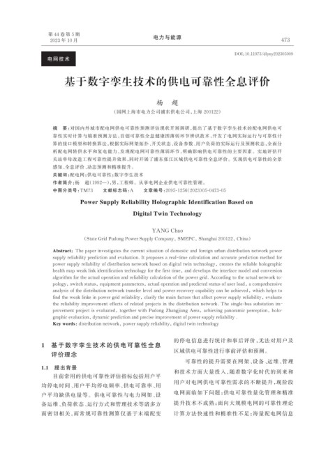 supply reliability prediction and evaluation. It proposes a real-time calculation and accurate prediction method for