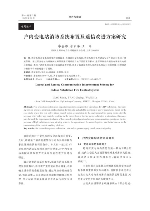 Abstract:Fire protection system is an important auxiliary equipment of substation. In UHV substation, fire fight⁃