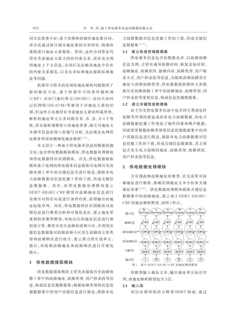 供电数据提取模块主要负责提取历史故障抢 该模型输入地址文本,输出地址单元标注序