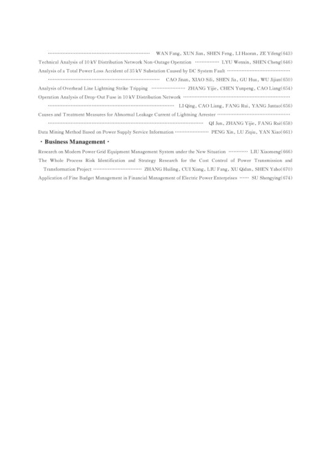 Analysis of Overhead Line Lightning Strike Tripping ………………… ZHANG Yijie, CHEN Yunpeng, CAO Liang(654)