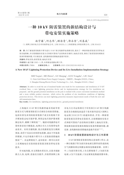 装实施策略,并以较便捷的安装方式和较可靠的产品结构来实现杆上地电位安装,解决了防雷装置的现场安