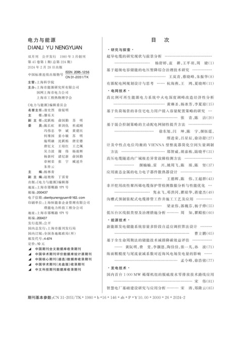 《电力与能源》编辑委员会 ………………………………… 黄琳圣,杨冰芳,李夏琼(15)