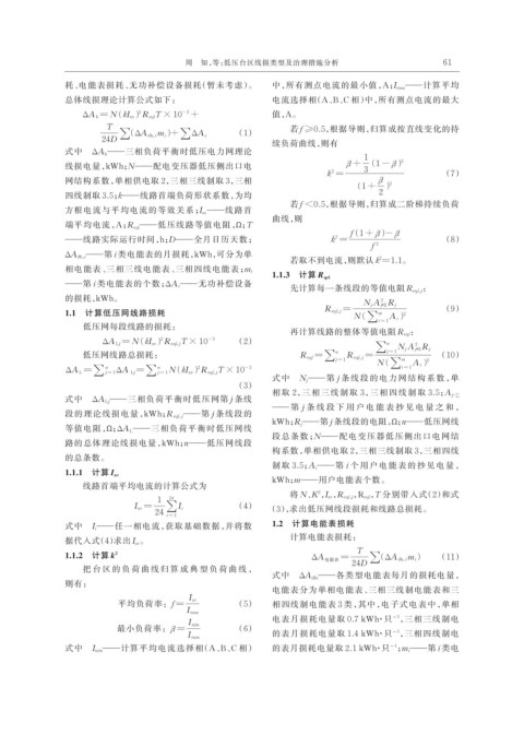 1.1 计算低压网线路损耗 R eql,j = m 2 (9)