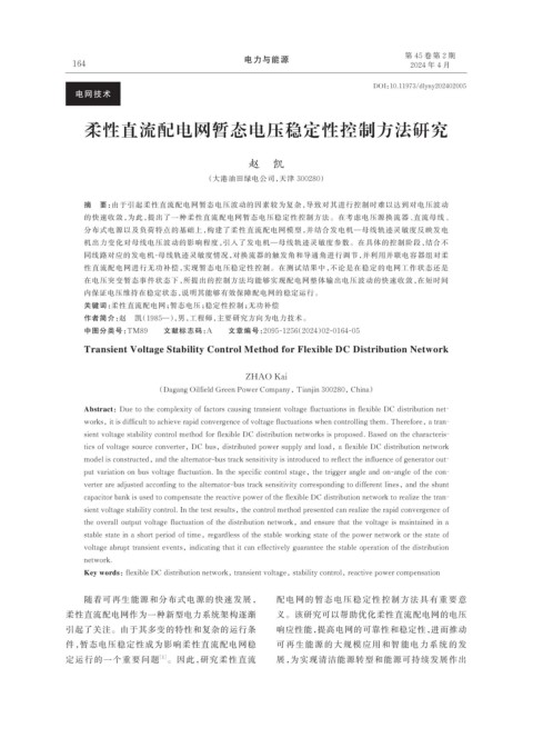 Key words:flexible DC distribution network,transient voltage,stability control,reactive power compensation