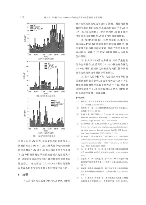 226 孙玉波,等:基于 GA-PSO-BP 与灰色关联的光伏短期功率预测