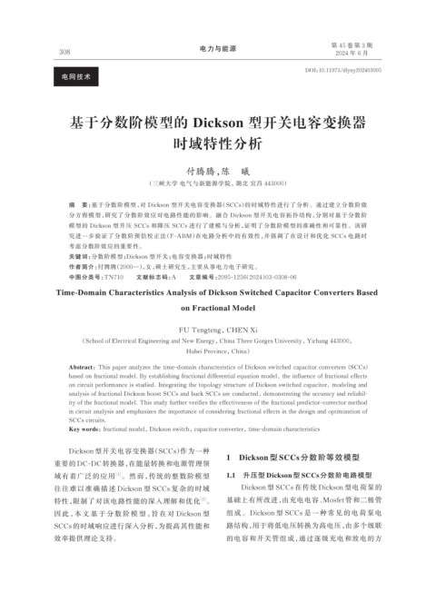模型的 Dickson 型升压 SCCs 和降压 SCCs 进行了建模与分析,证明了分数阶模型的准确性和可靠性。该研