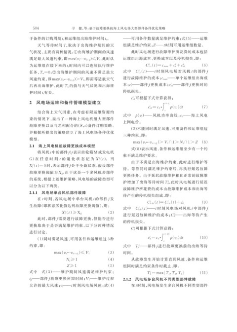 后再出海维护,此时 T w 的值与天气状况和出海维 本; c r——部件 j 更换成本; c cd——部件 j 更换时的