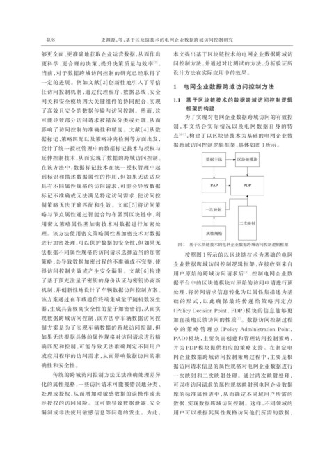 进行加密处理,可以保护数据的安全性,但如果无 图 1 基于区块链技术的电网企业数据跨域访问控制逻辑框架
