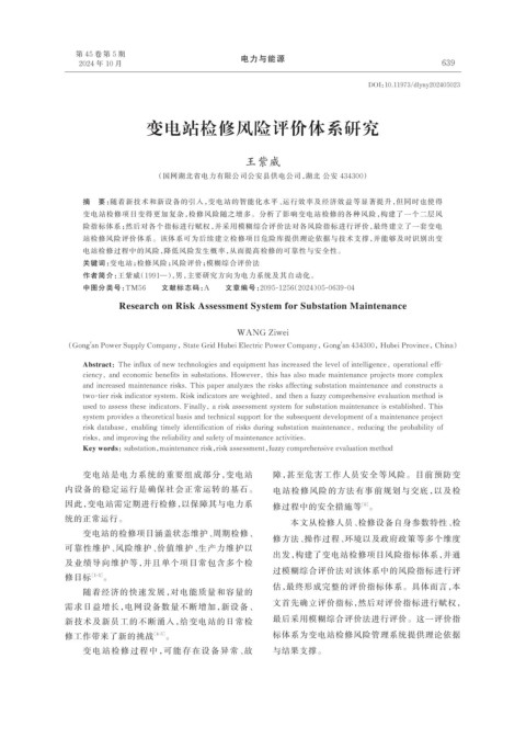 Key words:substation,maintenance risk,isk assessment,uzzy comprehensive evaluation method