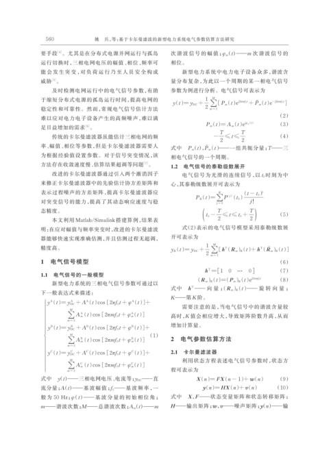 560 姚 兵,等:基于卡尔曼滤波的新型电力系统电气参数估算方法研究