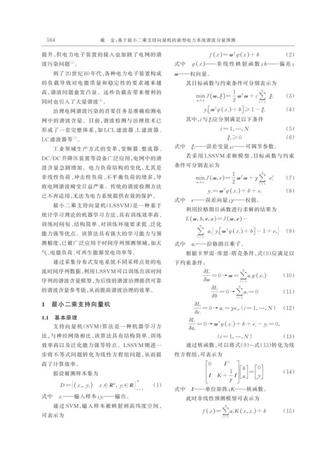 DC/DC 升降压装置等设备广泛应用,电网中的谐 若采用 LSSVM 求解模型,目标函数与约束