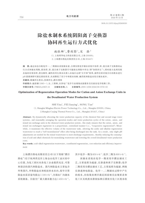 行方式和制水周期,使各阴、阳、混合离子交换器尽可能按比例集中再生(即“协同再生”),同时最大化利用废
