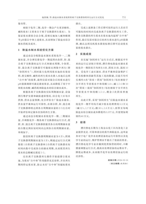 施依娜,等:除盐水制水系统阴阳离子交换器协同再生运行方式优化 751