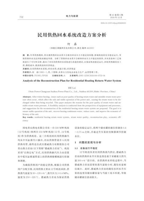 Abstract:After winter heating, issues such as poor quality of heating return water and unstable return water pres⁃
