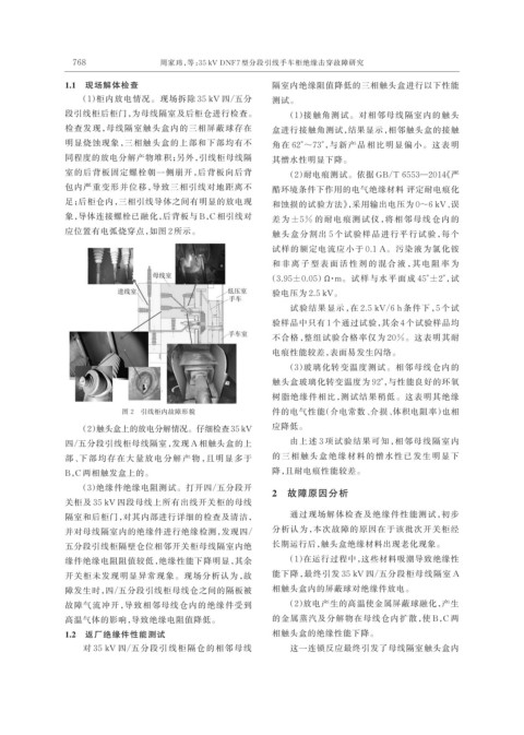 768 周家玮,等:35 kV DNF7 型分段引线手车柜绝缘击穿故障研究