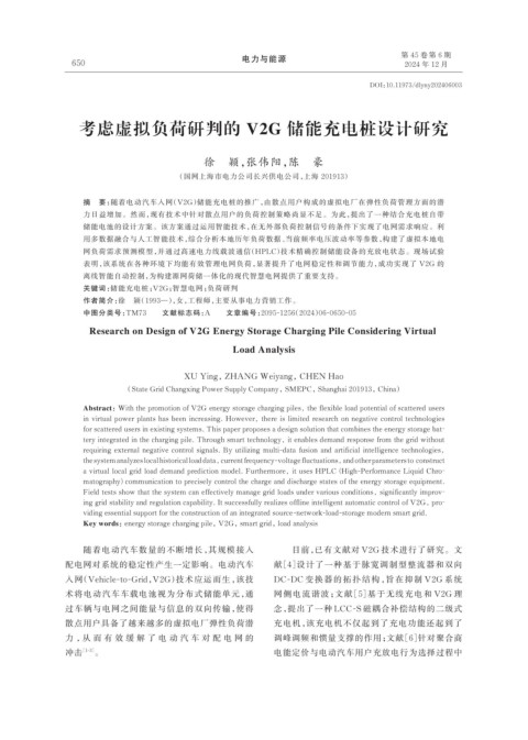 考虑虚拟负荷研判的 V2G 储能充电桩设计研究