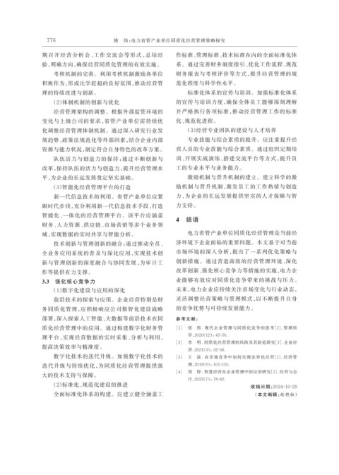 776 姚 炜:电力省管产业单位同质化经营管理策略探究