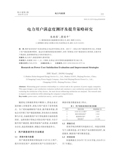 逐步融入市场竞争,而电力用户成为了竞争的焦 表 1 用户满意度调查对象及数量