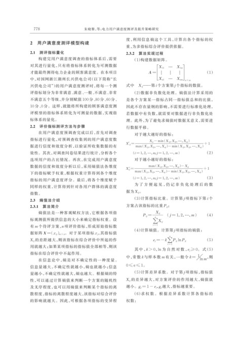指标的用户满意度评分。最后,将各个维度赋予 ( i = 1,2,⋯,n; = 1,2,⋯,m ) (3)