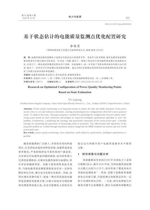Key words:power quality monitoring,state estimation,multi-objective optimization,intelligent optimization al⁃