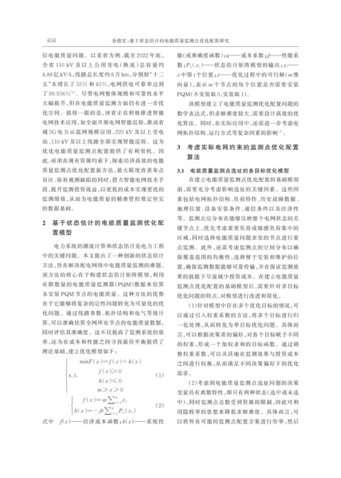 656 余俊宏:基于状态估计的电能质量监测点优化配置研究