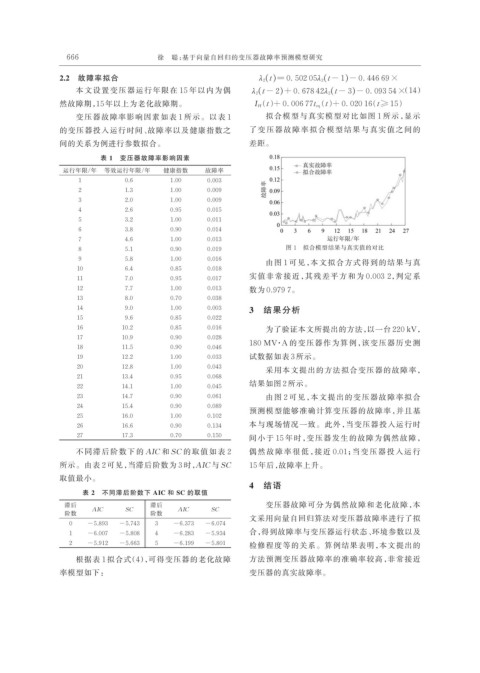 不同滞后阶数下的 AIC 和 SC 的取值如表 2 偶然故障率很低,接近 0.01;当变压器投入运行