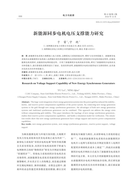 关键词:新能源发电系统;新能源同步电机;无功功率支撑;电压支撑