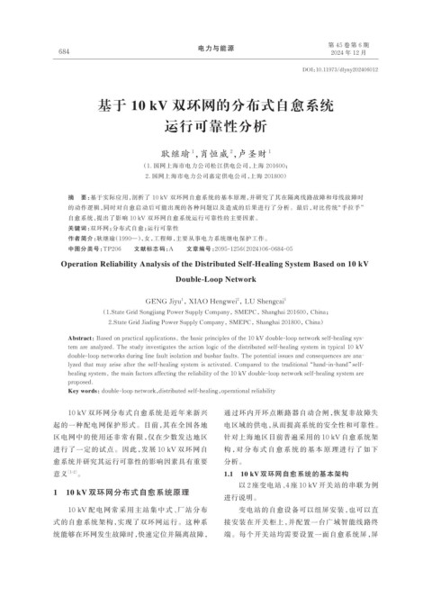 自愈系统,提出了影响 10 kV 双环网自愈系统运行可靠性的主要因素。