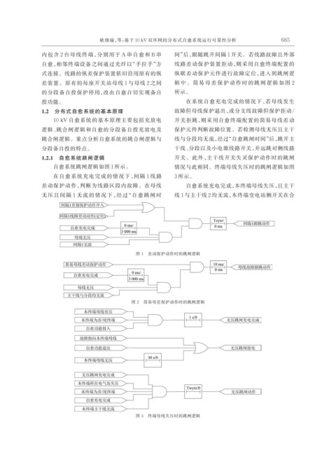 逻辑、跳合闸逻辑和自愈的分段备自投充放电及 保护元件判断故障位置。若检测母线无压且主干