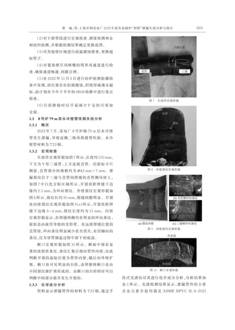 黄 诚,等:上海并网发电厂 2023 年度发电锅炉“四管”泄漏失效分析与统计 693