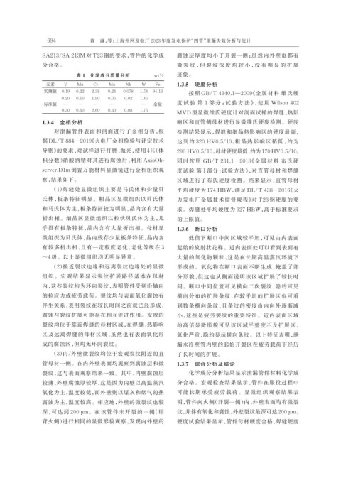 管母材一侧。在内外壁表面均观察到腐蚀层和微 1.3.7 综合分析及结论